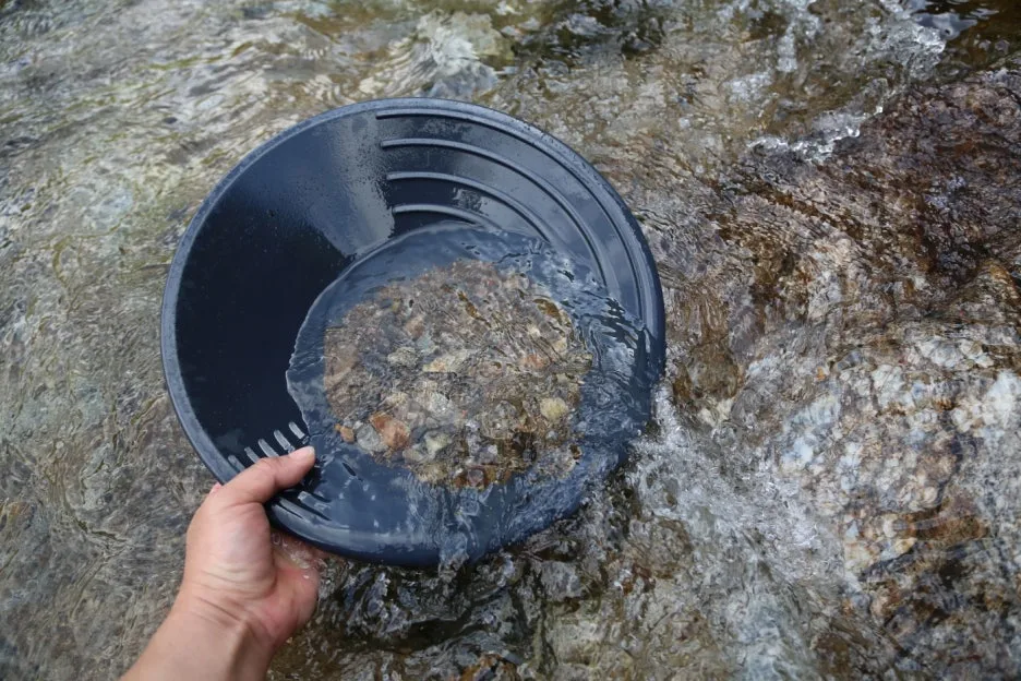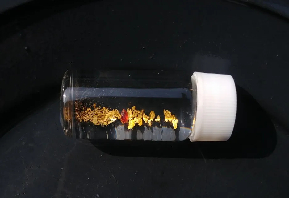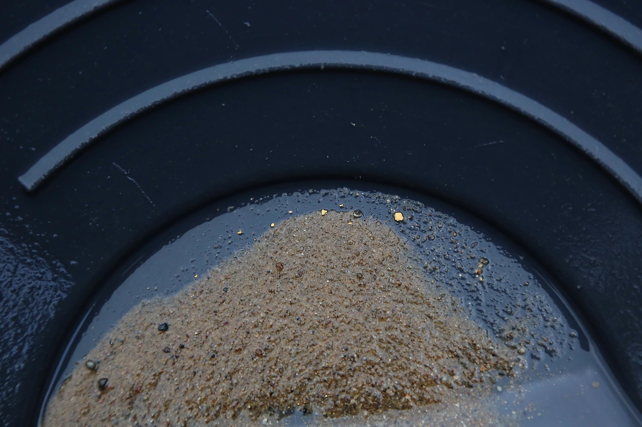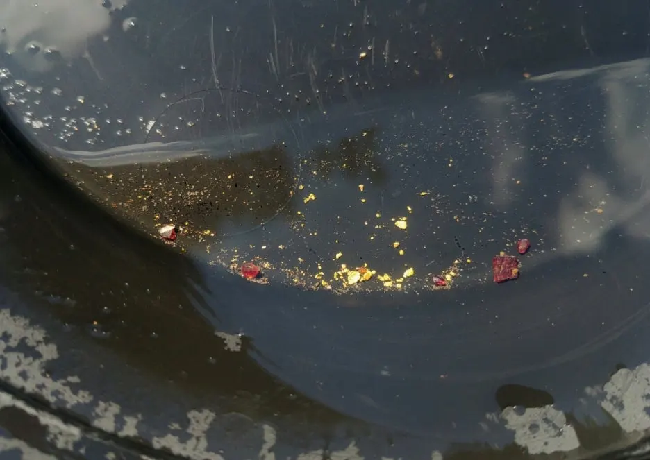 이 과정에서 물보다 19배 이상 무거운 금(밀도 약 19.32 g/cm³)은 아래로 내려가는 성질이 있으므로, 잘 흔들다 보면 최종적으로 아래에는 돌이나 모래보다 더 무거운 사금만 남게 됩니다.