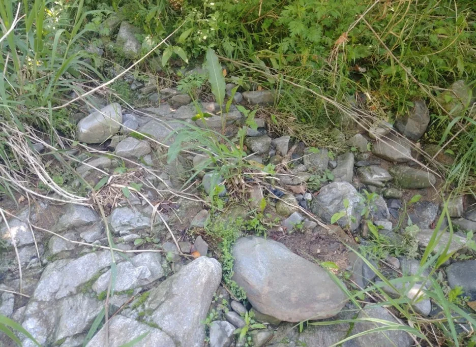 이와 같이 크고 작은 돌이 모여있는 곳도 좋은 포인트입니다. 돌을 들어내고 그 아래 흙을 잘 퍼담아 패닝을 해보면 사금을 볼 가능성이 높습니다.