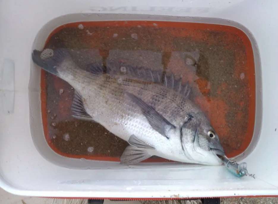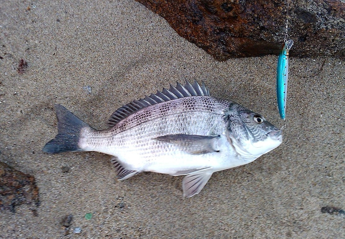 오늘의 주인공은 감성돔이니 감성돔 이야기로 다시 돌아갑니다. 미노우를 물고 나온 4짜 감성돔입니다. 파이팅이 참 좋았는데 옆에서 영상을 찍어준 사람이 없어 아쉽네요.