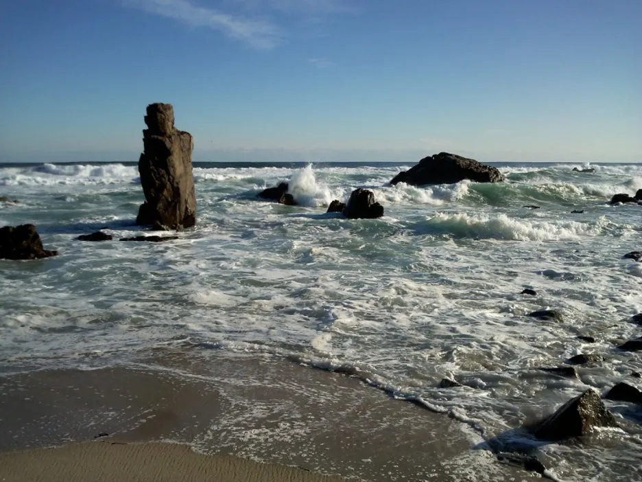 이른 아침, 파도에 맞서 여밭 사이사이를 공략합니다.