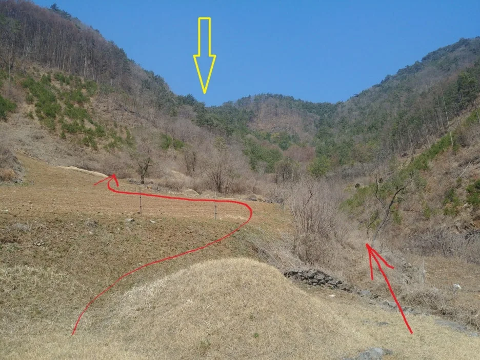 그런데 여기서는 선택의 실수가 아니라 착오의 실수로 인해 또다시 지옥문을 벌컥 열어젖히고 말았습니다. 여기가 아니라 더 왼쪽에 위치한 골짜기에서 출발해야 하는데 지도를 대충 보고 처음부터 잘못된 길로 산행을 시작했습니다.