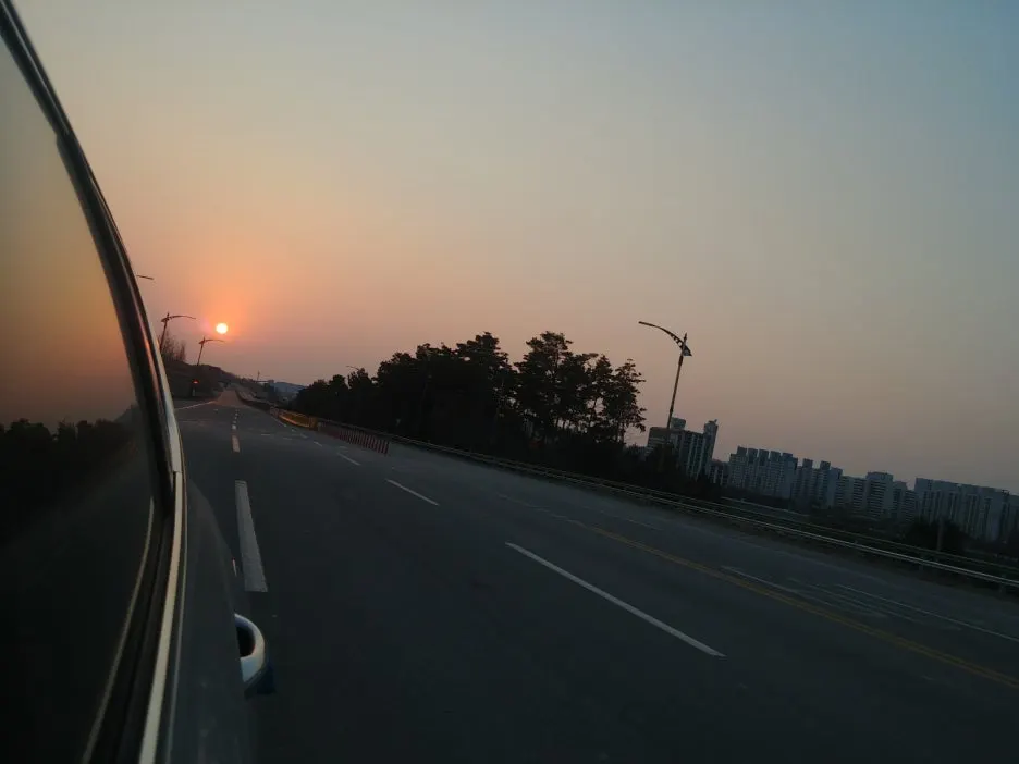 어쨌든, 잠시 정차한 김에 뒤를 보니 이제 막 떠오른 해가 예뻐서 찍어보았습니다.