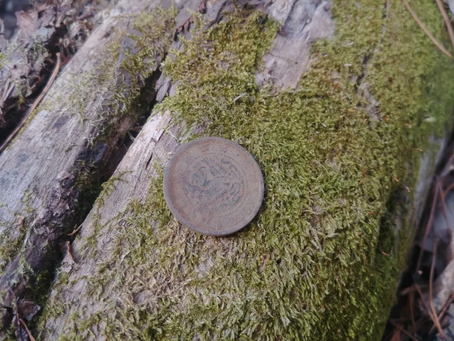 탐지를 시작하자 여러 곳에서 소리가 납니다. 소리가 나는 곳의 돌을 몇 개 들추자 상평통보 당일전과 일제시대 동전이 함께 나왔습니다.