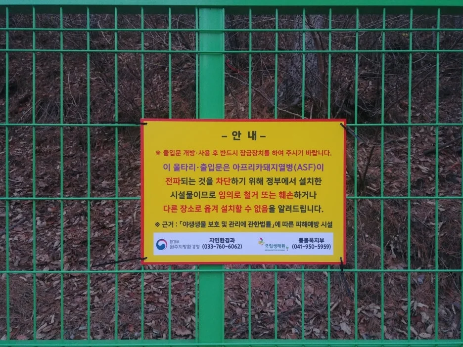 돌아가는 길에 체력이 눈곱만큼 회복되자 예의 금속탐지 병이 또 도져버리고 맙니다. 3번째 포인트는 이미 지나쳐 버렸기 때문에 못 가고, 4번째로 가려했던 포인트 부근에 차를 대고는 올라가 보기로 합니다. 철망과 철문이 앞을 막고 있었으나 글을 읽어보니 아프리카 돼지열병을 막기 위해 설치한 것으로, 필요하면 출입하되 문은 꼭 닫고 다니라는 뜻이네요.