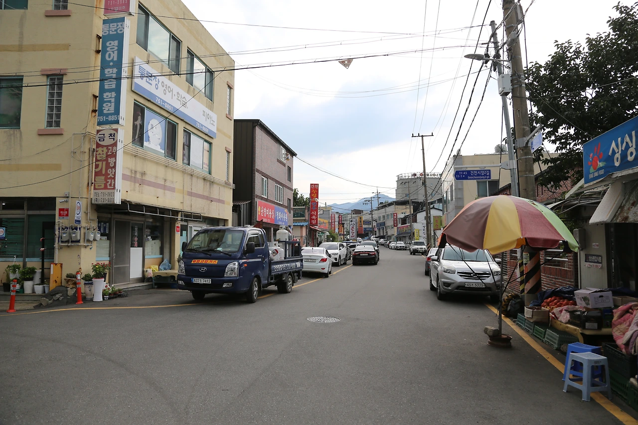 화석 구경도 어느 정도 했고, 더위도 식힐 겸 시원한 커피라도 마시려 건천 읍내로 들어왔습니다. 오래전, 이 건천 시장 어딘가에서 복족류 화석을 한약재로 팔던 곳이 있었을 것입니다.