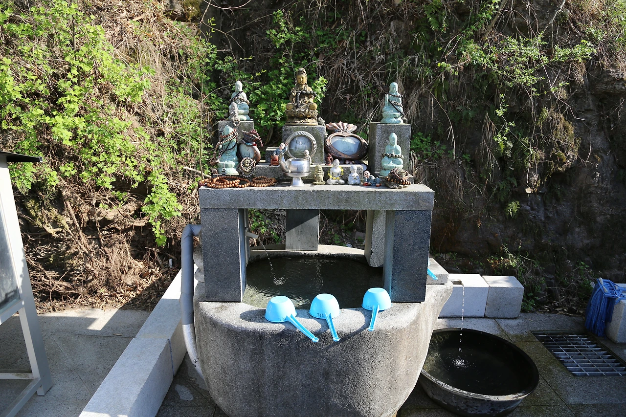 약수터 바가지가 있네요. 예전엔 그냥 생각 없이 바가지로 물을 떠 마셨는데, 생각해 보면 이 사람 저 사람이 입을 댄 걸 쓴다는 게 조금 위생적으로 좋지는 않은 것 같습니다. 코로나 사태를 겪으면서 사람들의 위생관념이 예전보다 많이 좋아진 긍정적인 측면이 있습니다.