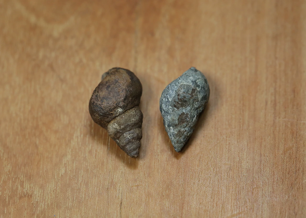 유삼각 조개 오른쪽에 현생 다슬기 비슷한 것이 보입니다.