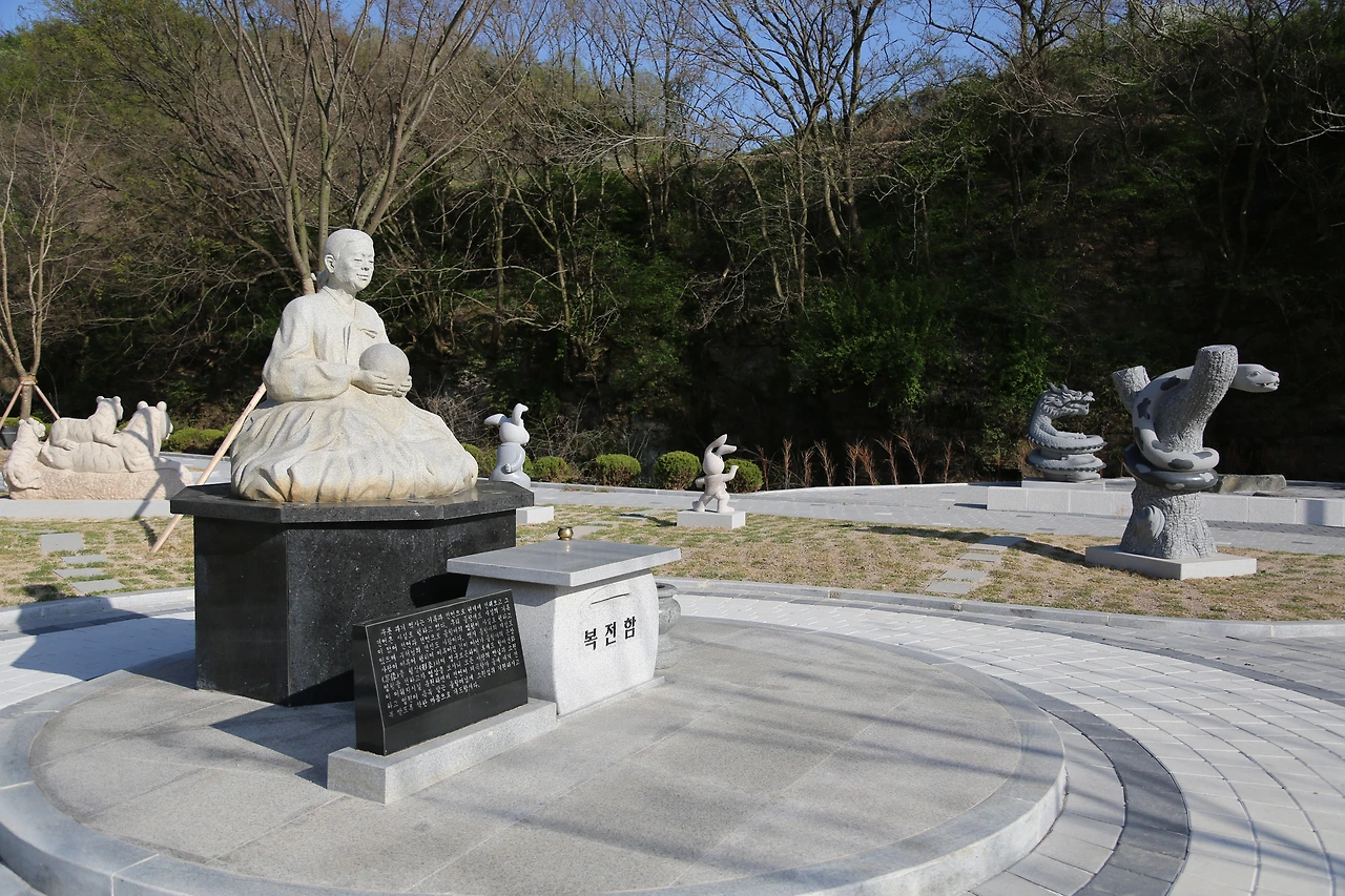 돌로 조각상을 번듯하게 만들어 놓았네요. 손에 큰 알 같은 걸 들고 있는데 그게 바로 돌할매입니다. 돌할매가 돌할매를 들고 있다고 해야 할까요? 아니면 돌할매가 돌할매에 안겨있다고 해야 할까요?