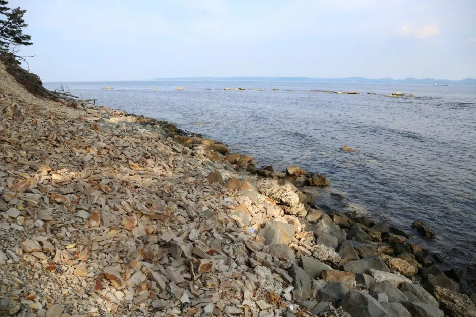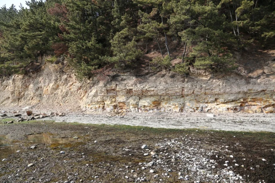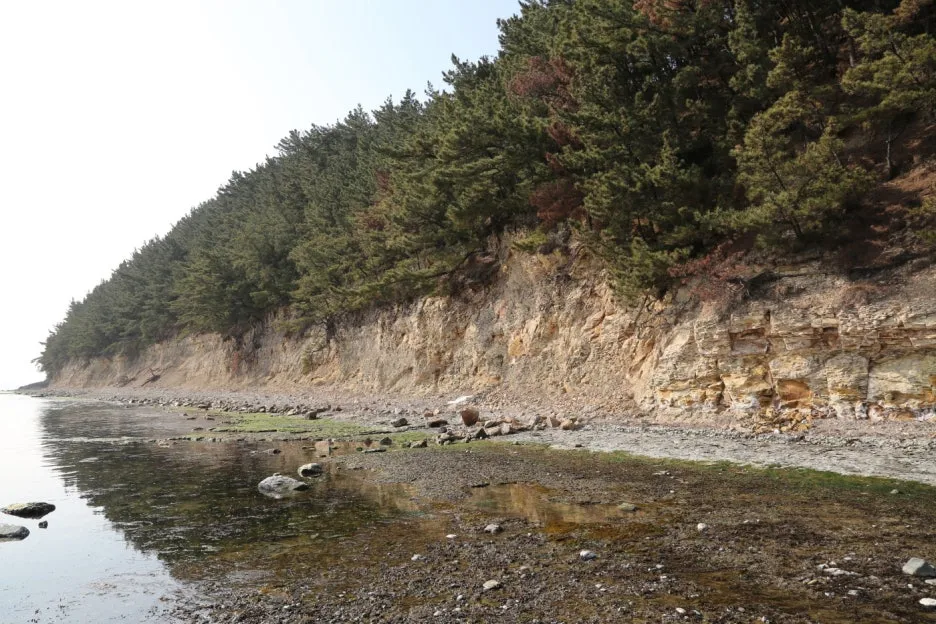바다와 만나는 자연 그대로의 멋진 절벽이 드러난 해안가의 전경이다. 인공적으로 조성된 데크보다 이쪽이 훨씬 운치있고 좋다. 아무도 없는 바닷가를 느긋하게 걸으면서 천만 년도 더 넘은 화석을 구경할 수 있다는 건, 대부분의 사람들이 살면서 쉽게 경험할 수 없는, 참으로 대단한 호사를 누리는 일이라고 아니할 수가 없다.