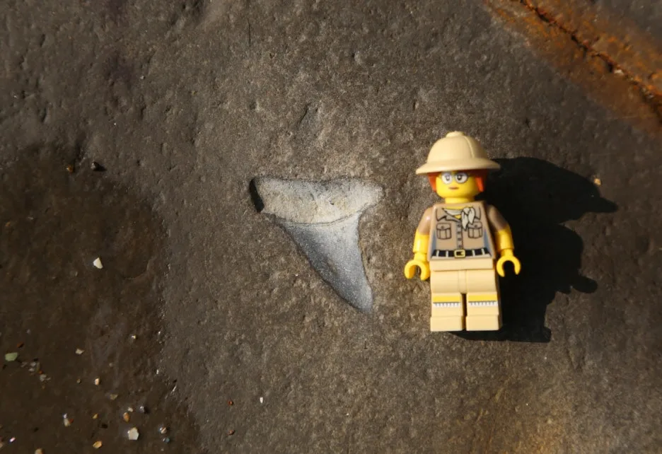 바닷물이 스미고 빠지는 기반암 위에 희미하게 남은 상어 이빨 화석의 흔적이다. 오래 전 여기서 바위를 붙잡고 있었던 상어 이빨 화석은 "여기 내가 있었다."는 표식만을 남기고 떠나버렸다.