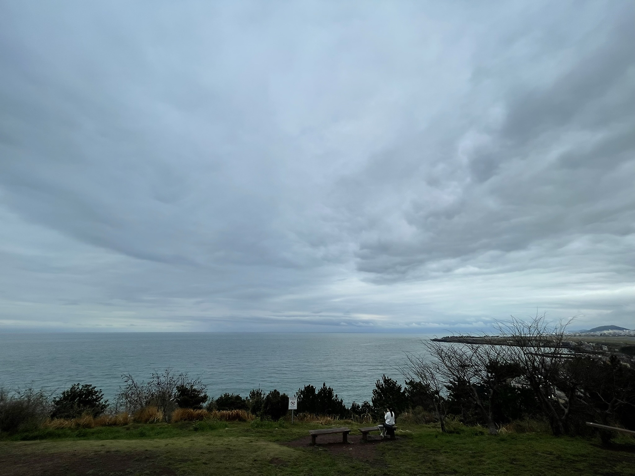 집에서 도두봉보다 더 가까운 곳에 사라봉이 있다는 걸 알게 되었다. 아이가 유치원에서 다녀왔다기에, 함께 갈 수 있는 오름이구나 싶었다. 유난히 집으로 돌아가기 싫었던 날, 사라봉에 올랐다. 올라가는 계단에서는 ‘여길 유치원생들이 올라갔다고?’ 하는 생각이 든다. 여전히 아이가 날 앞서 올라가고, 시원한 바람이 가빠진 호흡을 토닥인다. 망양정에 올라 영주 10경 중의 하나인 풍경을 바라본다. 눈에 담기는 것보다 더 넓게 펼쳐진다. 바다와 하늘의 경계선이 희미하고 초록색 나무들이 내가 있는 공간을 상기시켜준다. 예로부터 ‘사봉낙조’라 불리며 해지는 모습이 참 예쁘다고 하니 지나가다 또 들릴 이유가 생겼다.