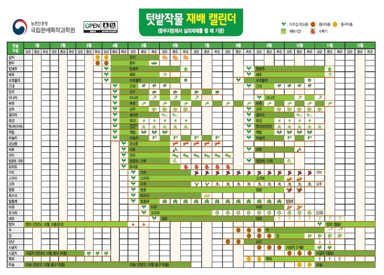 이제 슬슬 텃밭작물을 심는 분들께 참고하시라고 재배 달력을 준비했다.