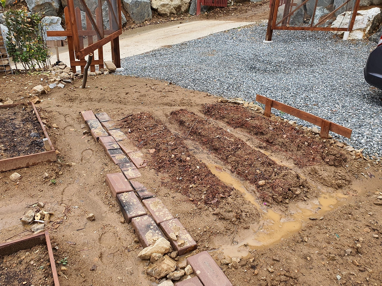 토요일 비가 온 뒤에 이랑을 보니, 배수가 잘 되지 않는다.