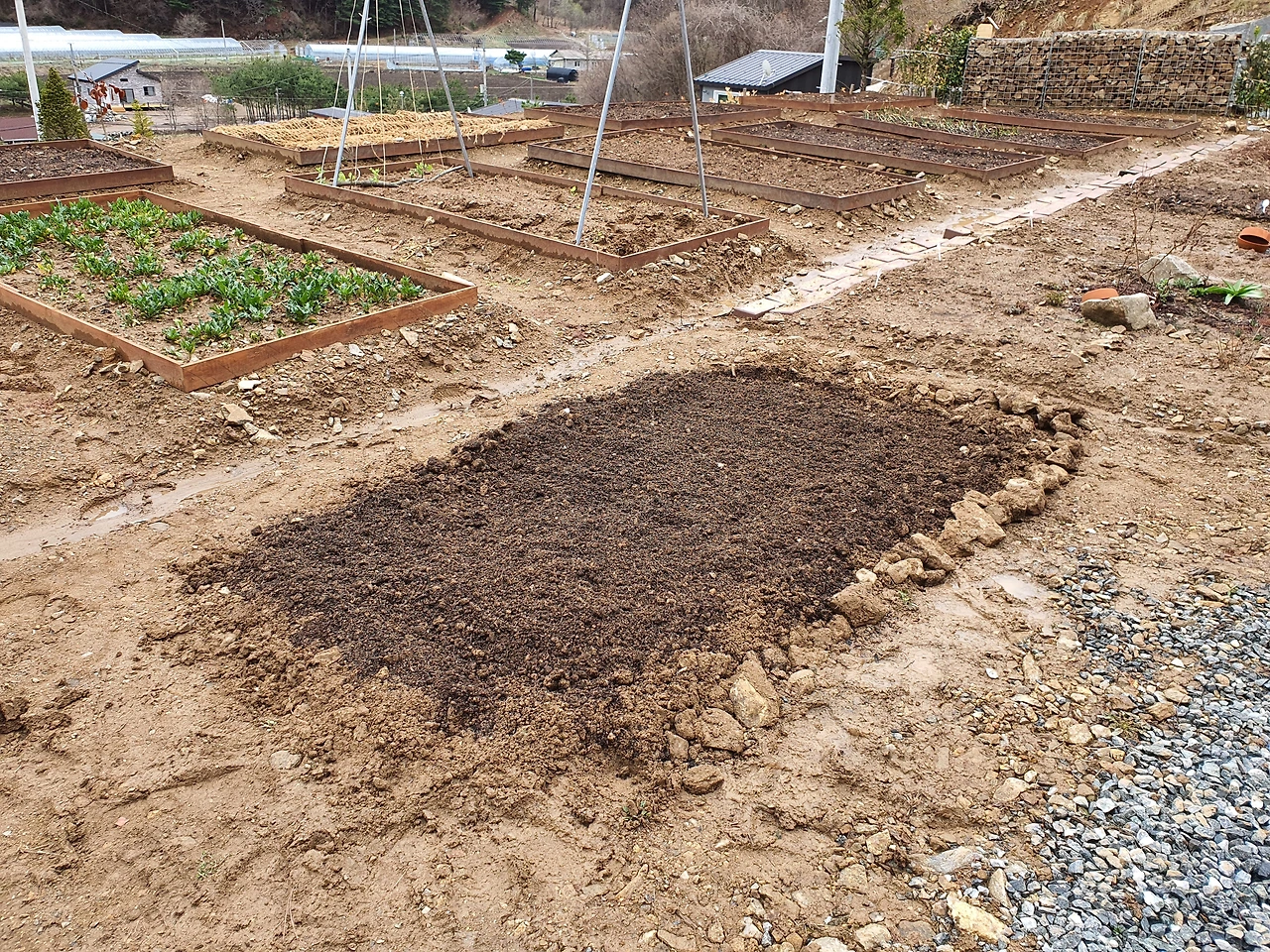 아주 척박한 땅이지만, 돌을 골라내고 퇴비를 부어놨다. 옥수수는 아직 심으려면 멀었다. 그래서 이제야 밭을 준비해 두었다.