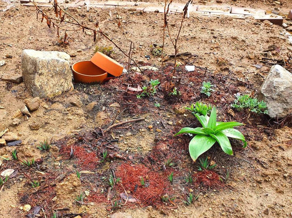 잘 자라려나 걱정했는데, 단단한 땅을 뚫고 싹이 잘 나오고 있었다.
