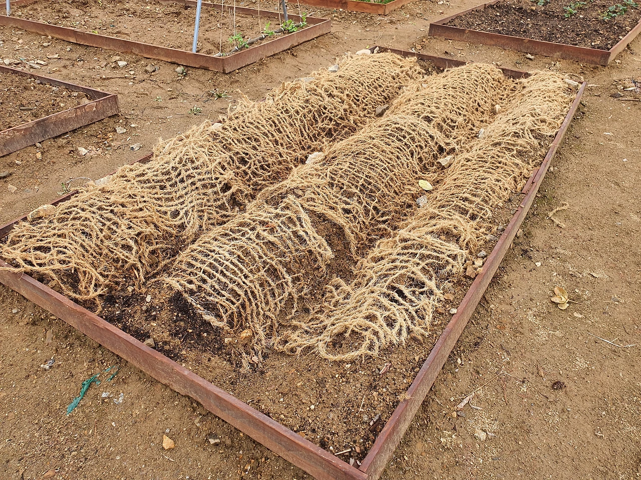 감자는 지난주에 덮어 놓은 야자메트 그대로 큰 변화는 없었다.