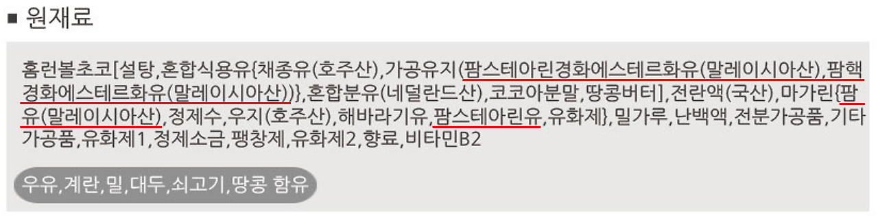 이제 이렇게 과자 뒷면의 원재료에 나와있는 수많은 팜유들이 무엇인지 알 수 있습니다.
