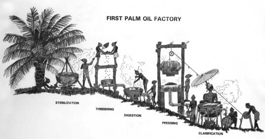 산업화 이전의 팜유 추출 (출처: A Brief History of the Oil Palm)