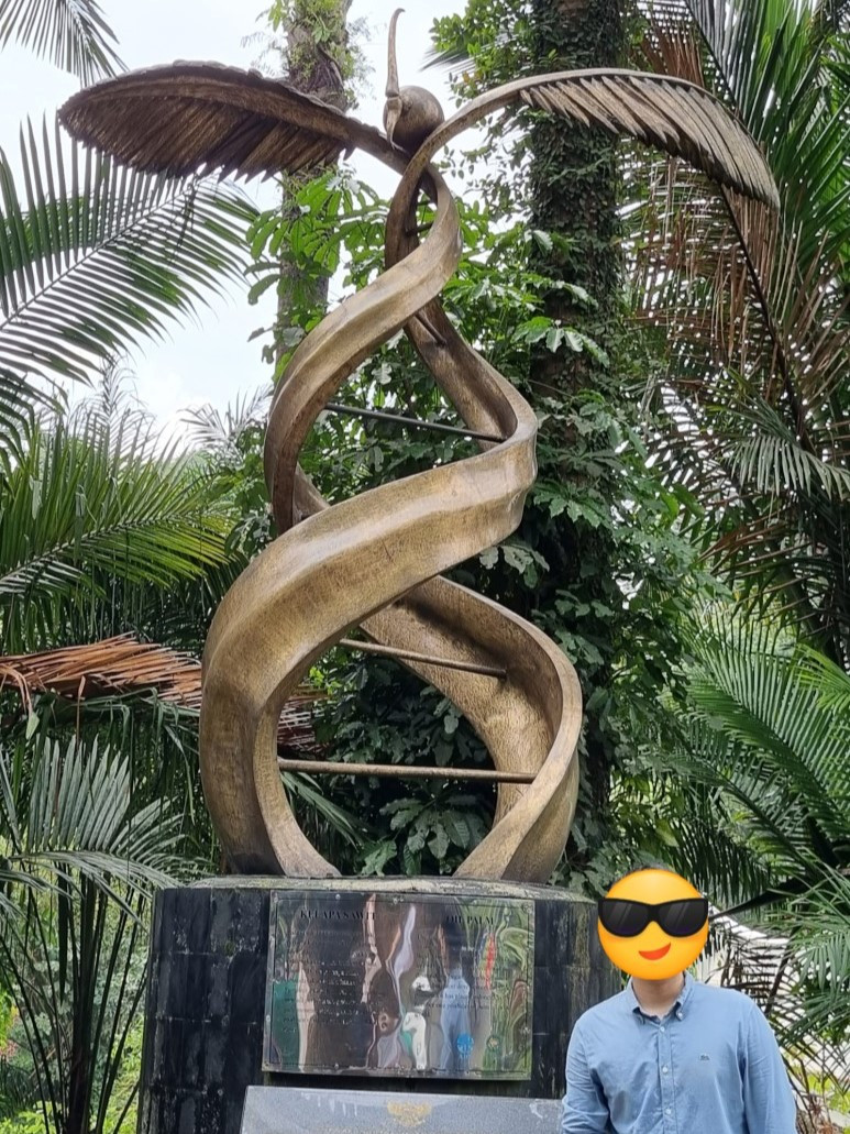 인도네시아에 상업용 팜농장이 개발(1911년 수마트라)되기 전, 1848년에 기름야자 종자가 인도네시아에 최초로 심어졌습니다. 자카르타 인근에 있는 '보고르'라는 지역에 Kebun Raya라는 큰 식물원이 있는데요. 인도네시아 최초의 기름야자 종자가 심어진 곳이 바로 이 식물원이고, 그곳에 이를 기념하는 조형물이 세워져 있습니다. 팜유가 인도네시아의 주요 산업이 되고 전 세계 수많은 사람들을 먹여 살리고 있으니, 이 정도 기념비는 세워줘야 하겠네요.