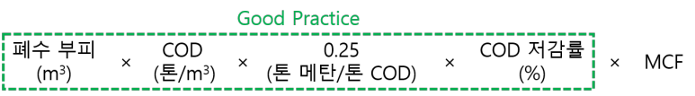 참고로 호기성 분해 시설은 MCF가 0입니다. 앞서 설명드렸듯 호기성 분해, 즉 유기물 분해 시 산소가 개입하면 메탄이 발생하지 않기 때문입니다. 메탄이 발생하지 않으니, 그냥 0을 곱해서 메탄 발생량을 0으로 만들어버리는 것이죠.