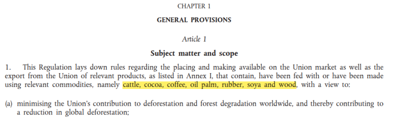 2019년 'ILUC'에 이어, 2023년 ~ 2024년의 이야기는 'EUDR'입니다. 2023년 EU는 팜유를 포함해 커피, 코코아, 대두, 쇠고기, 목재, 고무(초콜릿이나 가구와 같은 파생 품목도 포함) 총 7개 품목을 '삼림 파괴 품목'으로 지정하고, 이에 대한 수입 규제인 EUDR(EU Deforestation Regulation)을 발표했습니다.