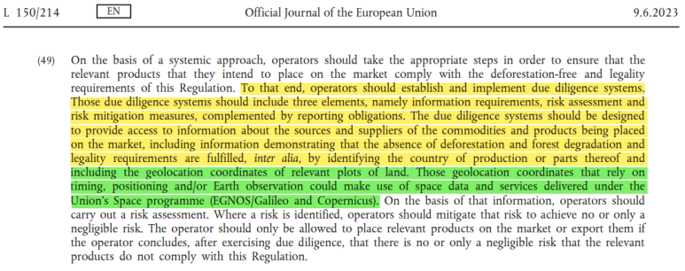 이 품목들에 대한 EU 시장 역내 수입, 판매 시에는 엄격한 실사가 필요한데, 원산지나 '지리적 위치 정보'까지 있는 실사 선언서(Due Diligence Statement) 제출이 의무화됩니다. 그런데 이 실사 기준이 너무 엄격해서, 이 7개 품목들이 EU로 가는 수출에 큰 차질이 예상되는 상황입니다. 시행은 2024년 12월 30일부터입니다.(소규모 기업에는 2025년 6월 30일부터 적용)