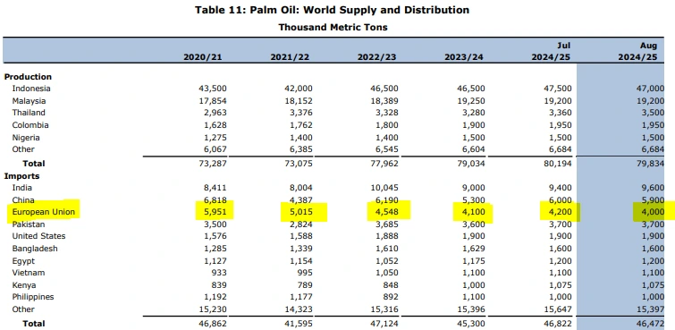 사실 EU에서 이렇게 팜유를 비판해도, EU가 결코 팜유를 적게 쓰지는 않습니다. EU는 팜유 수입을 줄여가고 있긴 하지만 여전히 인도, 중국에 이은 가장 많이 팜유를 수입하는 권역입니다. 인도와 중국의 인구가 모두 14억 명 이상, EU의 전체 인구가 4~5억 명 정도 되는데, 이를 보면 1인당 사용량으로는 오히려 EU가 인도나 중국보다도 팜유를 더 많이 사용한다는 이야기가 됩니다. 이러한 EU가 환경을 파괴하는 팜유를 쓰지 말자고 하는 것은, 이러한 소비에 대한 반성인지, 아니면 역설인지 모르겠습니다. 그리고 EU의 팜유 규제가 정말 실효성이 있을지 의문이 드는 부분이기도 합니다.