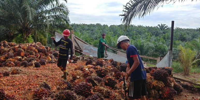 노동 집약적인 팜사업. 팜열매를 운반하는 모습 (본인 촬영)