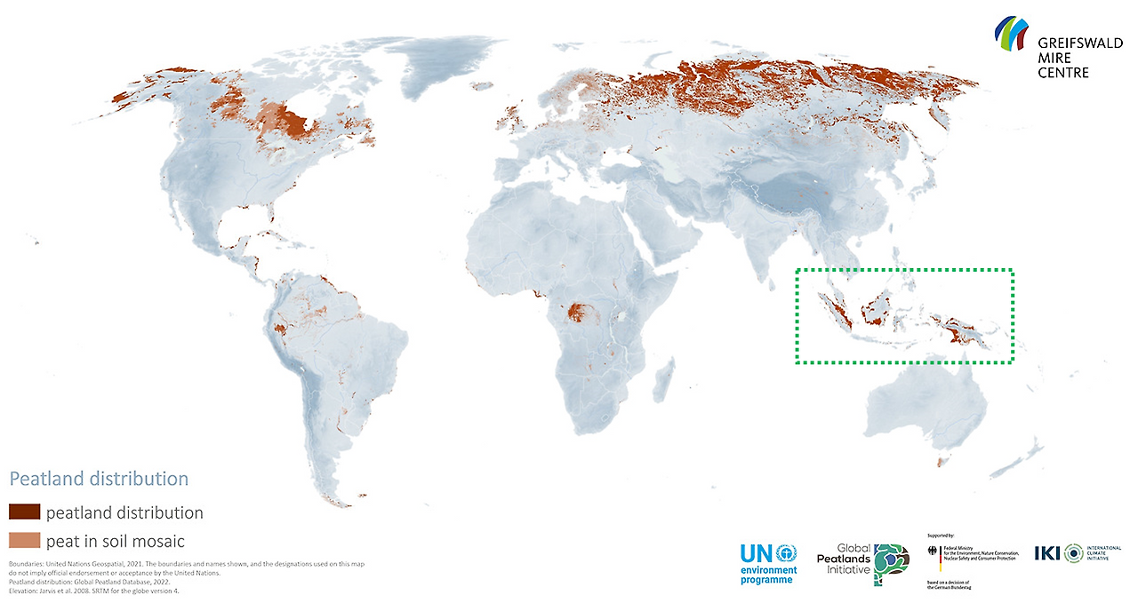 아래 지도는 세계 이탄지대 현황을 보여줍니다. 지도를 보면 초록색 네모로 표시한 인도네시아와 말레이시아 지역에 이탄지대가 많이 분포한 것을 알 수 있습니다.