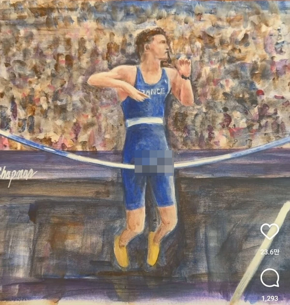 한 네티즌은 장대 높이 뛰기 장면을 그려 인스타그램에 올렸다