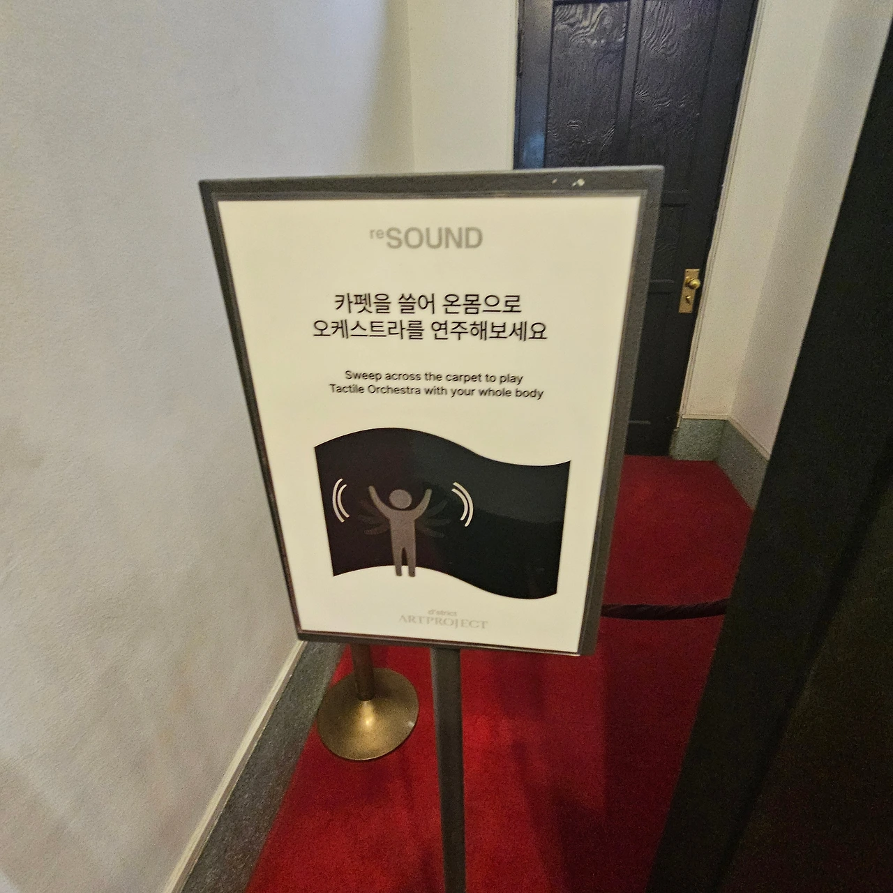 미국의 SOSO가 제작한 "SEATED CATALOG OF FEELINGS"는 의자의 진동을 통해 소리를 느끼게 하는 독특한 경험을 제공합니다. 헤드폰에서 나오는 안내 멘트와 함께, 바닥의 설명 글과 머리 위의 그래픽 표현은 이 경험을 더욱 풍부하게 만듭니다.