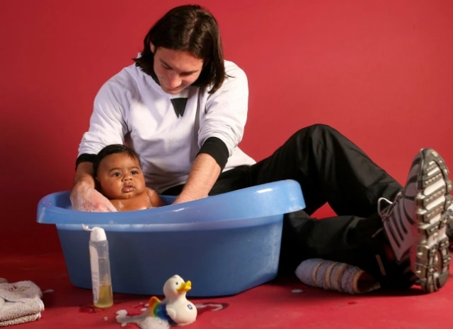 촬영 당일, 바르셀로나 캄 노우의 라커룸에서는 묘한 장면이 연출되었습니다. 당시 갓 스무 살이던 리오넬 메시는 지금의 카리스마 넘치는 모습과 달리, 수줍음 많고 내성적인 청년이었습니다. 낯선 아기를 플라스틱 욕조에 넣고 씻겨주는 컨셉의 촬영이 진행되자, 메시는 아기를 어떻게 안아야 할지 몰라 쩔쩔매며 어색한 미소를 지었습니다. 엄마의 손길을 빌려 겨우겨우 촬영을 마친 이 사진은 달력의 한 페이지로 잠시 쓰인 뒤, 17년이라는 긴 시간 동안 잊혔습니다.