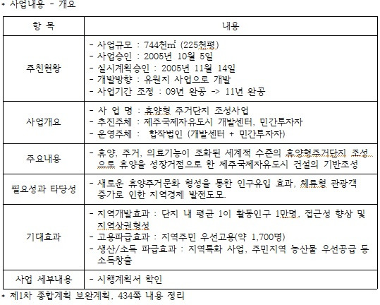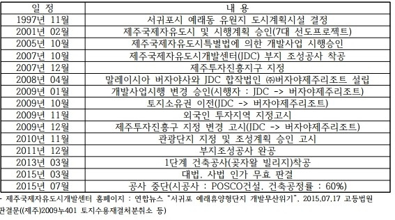 - 실 사업 진행 및 행정고시는 미정이었음. 유원지 사업과는 별개의 제주의 국제자유도시 개발을 위한 구상 단계.