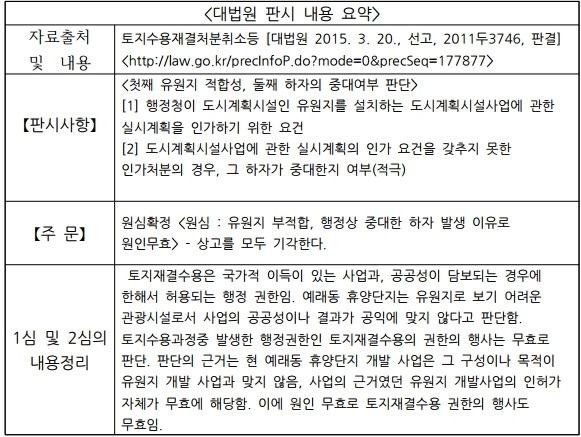 * 2015년 3월 20일 대법원 토지수용재결 무효판결.