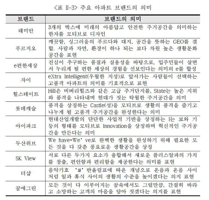 아파트 브랜딩 전략을 시계열로 정리하면 하기와 같다.
