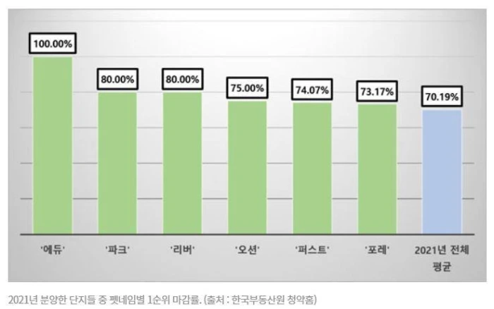 (펫네임을 활용한 단지들은 1순위 청약마감률이