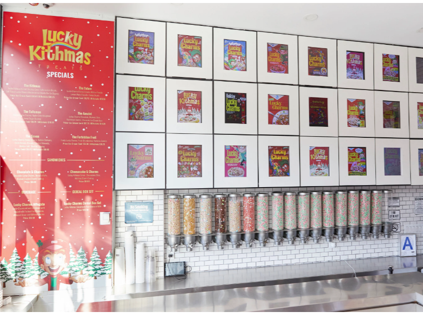 트릿츠에는 콘플레이크, 프루트 룹스 등 24가지의 시리얼과 킷캣 트윅스 등 25가지의 토핑이 가득합니다.