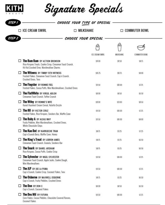 셀럽들이 자신들이 시리얼을 먹는 조합을 메뉴로 만든 것이죠.