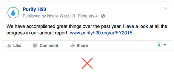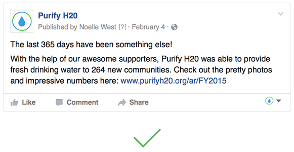 팁: 많은 사람들이 모바일 폰으로 페이스북을 봅니다. 항상 당신의 포스트가 작은 화면에서 잘 보이는지를 고려하세요. 간단하고 짧은 포스트가 주목을 받습니다. 웹사이트에 링크하기 전에 폰에서 어떻게 보이는지 먼저 체크하세요.