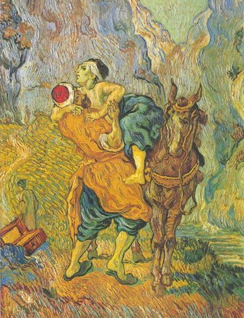 ‘아끼면 똥 된다’ 가훈을 말하는 친구의 표정이 자못 심각합니다. 유희적 표현이라는 편견을 걷어내면 메시지는 명확합니다. 안으로는 때를 놓치지 말자는 반성이면서 밖으로는 이웃과 나누며 살자는 다짐이지요. 가훈으로 정했을 정도면 살면서 쌓인 게 많았던 모양입니다. 그만큼 쉽지 않았을 테고요. 그림의 제목은 <선한 사마리안>입니다. 앞서 가훈처럼 그림이 주는 메시지는 단순합니다. 이웃을 사랑하라. 해보면 알겠지만 단순한 일일수록 머리가 아닌 몸이 먼저 움직여야 합니다. 실천이 담보되어야 한다는 뜻인데 그만큼 어렵다는 반증이기도 합니다.