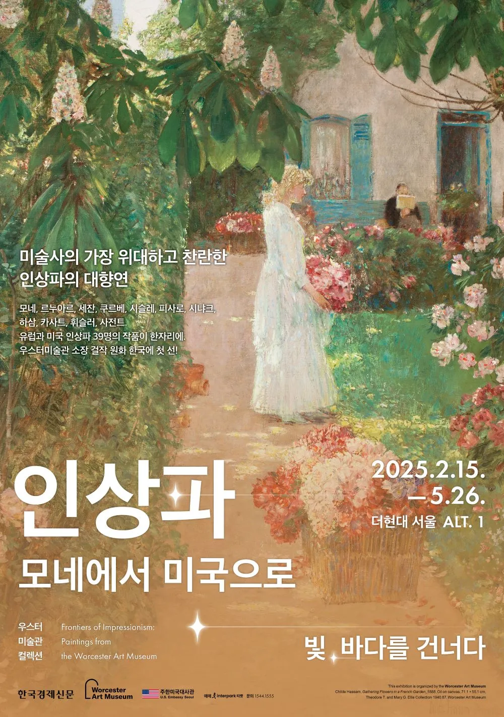 인상주의 탄생 150주년을 기념해 오는 2월 15일부터 5월 26일까지 더현대 서울 ALT.1에서 특별전 ≪인상파, 모네에서 미국으로: 빛, 바다를 건너다≫가 열린다. 모네의 <수련>, 알프레드 시슬레의 <빨래터>, 폴 시냐크의 <골프 주앙>, 르누아르의 <아랍 여인>과 같은 인상파 거장 39명의 명작들을 한자리에서 감상할 수 있다. 무엇보다도 이번 전시에서는 혁신적인 예술 운동이었던 ‘인상주의’가 대서양을 넘어 미국의 자연과 정서를 만나 재탄생한 과정이 조명된다. 윌리엄 메릿 체이스, 차일드 하삼, 존 싱어 사전트 등 한국에서는 상대적으로 덜 알려진 미국 인상주의의 독창적인 아름다움을 만나볼 수 있다. 또한 독일과 북유럽의 인상주의 작품들까지 전시된다.