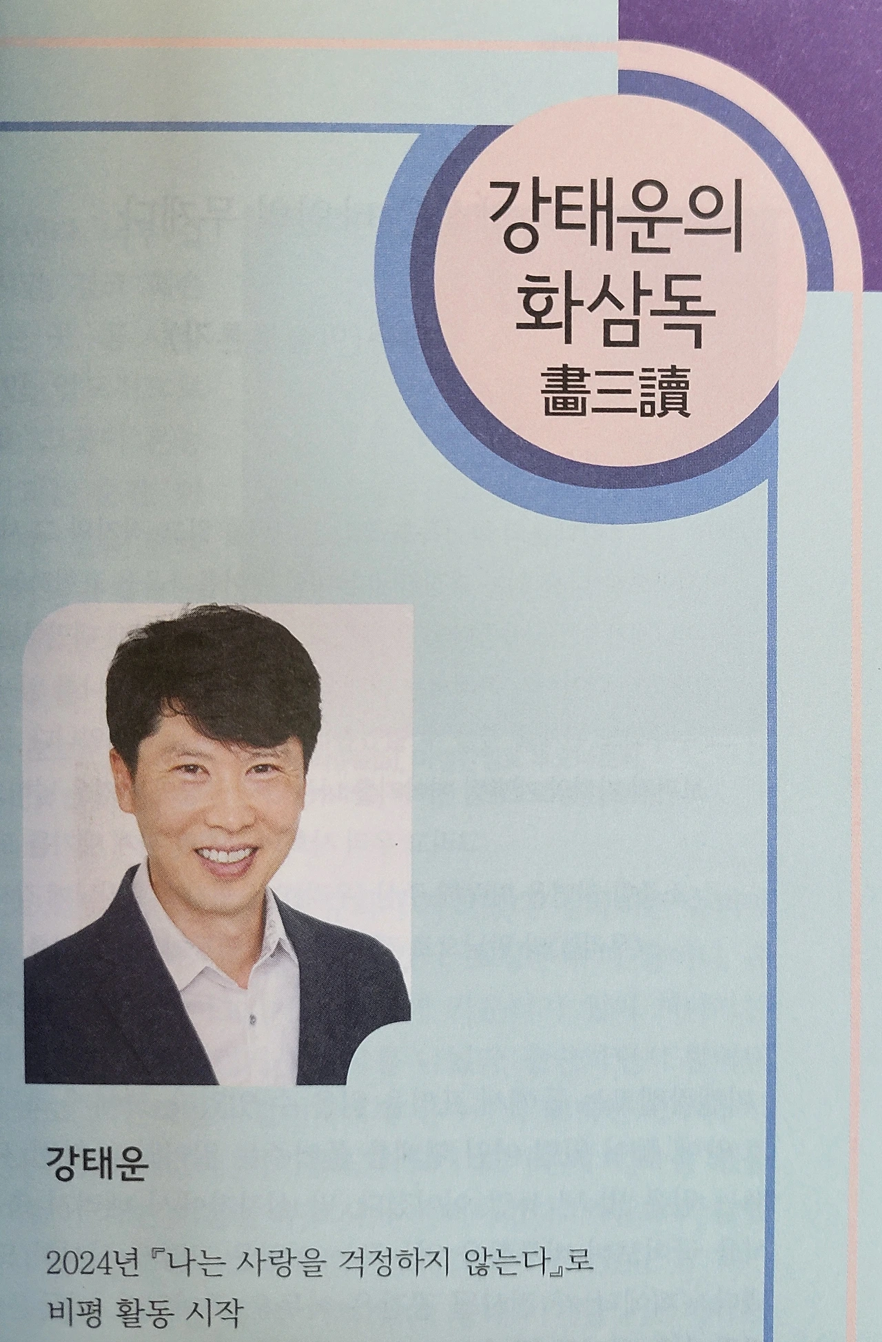 2025년 10월부터 월간 《우리詩》에 『강태운의 화삼독畵三讀』기명으로 미술인문 글을 연재합니다.