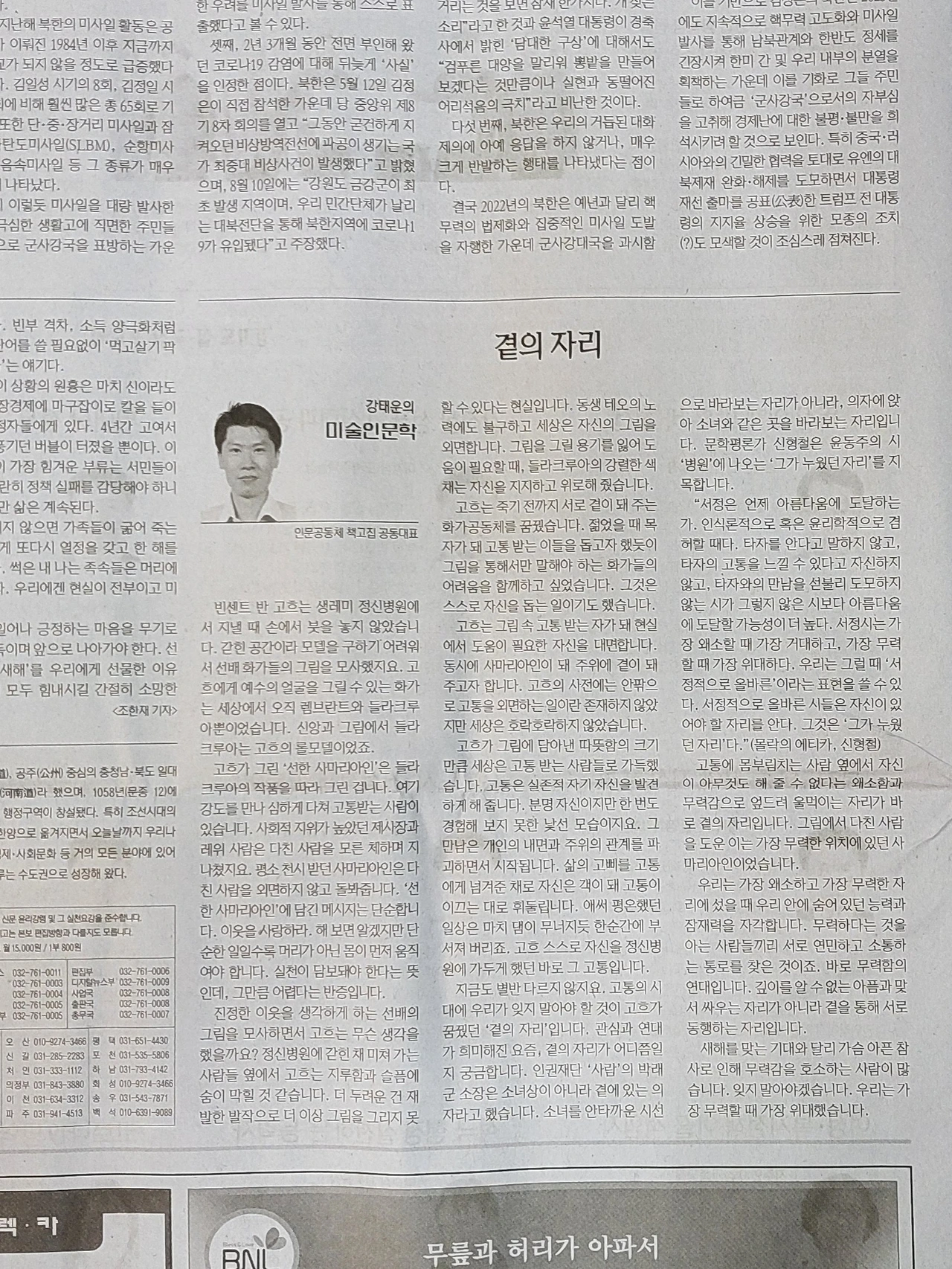 지금도 별반 다르지 않지요. 고통의 시대에 우리가 잊지 말아야 할 것이 반 고흐가 꿈꾸었던 '곁의 자리'입니다. 관심과 연대가 희미해진 요즘 곁의 자리가 어디쯤 일지 궁금합니다. 인권재단 '사람'의 박래군 소장은 소녀상이 아니라 곁에 있는 의자라고 했습니다. 소녀를 안타까운 시선으로 바라보는 자리가 아니라, 의자에 앉아 소녀와 같은 곳을 바라보는 자리입니다. 문학평론가 신형철은 윤동주의 시 <병원>에 나오는 ‘그가 누웠던 자리’를 지목합니다.