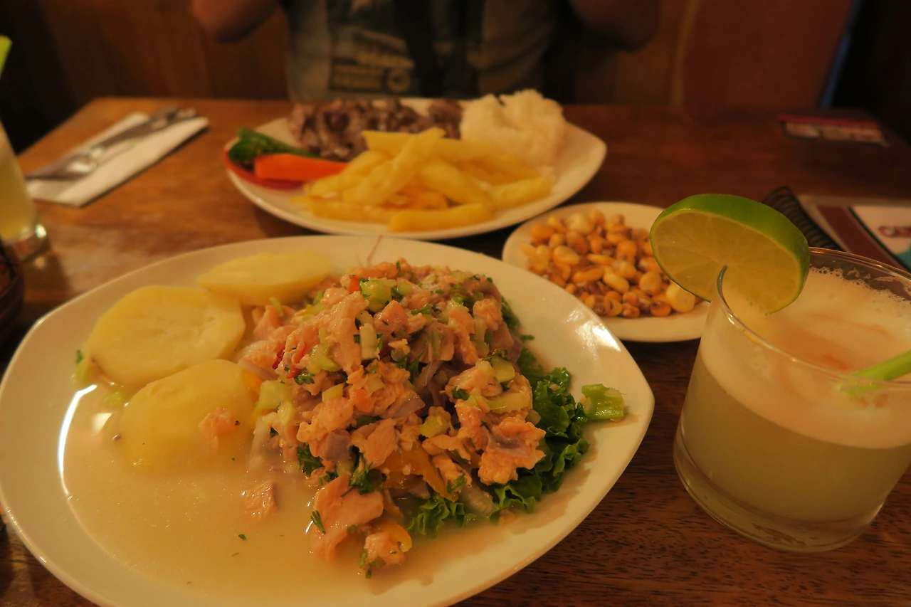 광장 주변 식당은 비싸고 맛은 그저 그렇다는 이야기를 들었지만, 이제 막 쿠스코에 도착한 새내기 여행객이 고를 수 있는 선택지가 많지는 않았다. 그나마 저렴해 보이는 식당을 찾아 세비체(페루식 물회)와 알파카 고기를 주문했다. 그리고 페루에서 반드시 마셔야 한다는 피스코 사워도 한잔씩 곁들였다.