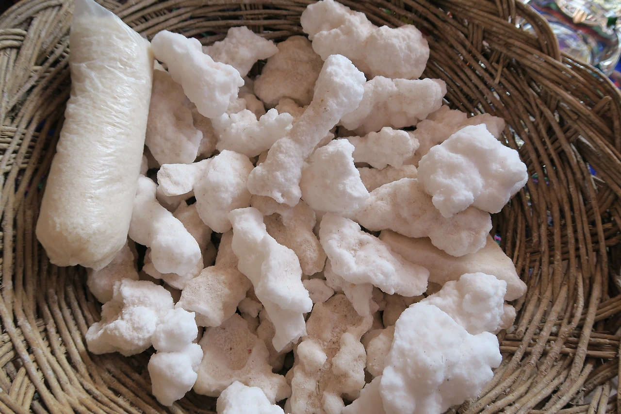 수 많은 기념픔 중에서도 유독 눈에 들어왔던 것은 바로 이 소금 덩어리. 믿기 어렵겠지만, 이 산골 마을에 있는 염전에서 갓 잡아올린 싱싱한 소금이다.