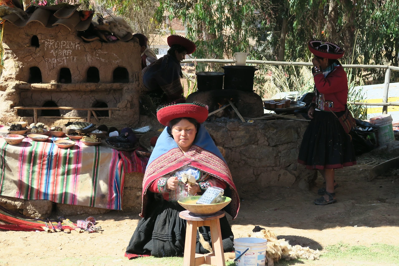 우리를 태운 자그마한 봉고차가 향한 곳은 쿠스코 인근의 친체로라는 마을이었다. 옛 잉카인들의 생활양식을 지금까지 이어가고 있는 곳이라는 설명이 있었지만, 내가 보기에는 패키지 관광에서 흔히 볼 수 있는 기념품 판매를 위해 방문하는 곳 같았다. 알파카 털에서 뽑아낸 실에 색깔을 입히는 과정을 보여주었는데, 딱히 흥미를 느끼진 못했다.