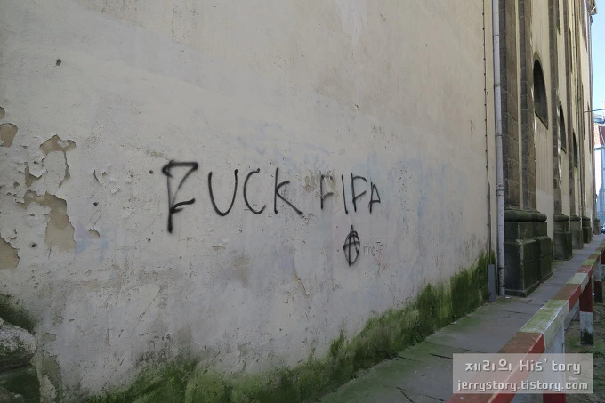 어디로 가는지도 모른 채, 가이드를 따라 골목 어딘가를 정신없이 걷다가 문득 벽에 적힌 낙서가 눈에 들어왔다. 요즘들어 뉴스에 오르락내리락하는 블라터 전 회장과 피파의 비리를 포르투 사람들은 이미 알고 있었던 걸까? 저 당시에는 포르투갈의 축구 영웅 루이스 피구가 피파 회장 선거에 출마했던 때다. 뭐, 피파와 포르투 사이에 어떤 사연이 있었는지는 모르겠지만, 포르투 골목 여기저기에서 피파를 욕하는 낙서를 유난히 많이 볼 수 있었다.