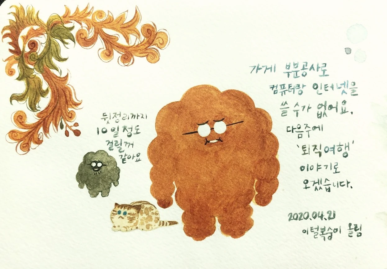 블랭크스 서프 샵 겸 세컨더리액션 스튜디오 겸 우리 집 겸 에어비앤비를 겸하는 가게의 내부 공사를 하고 있습니다. 저희는 가게에 붙은 방에서 살고 있어서 매장 공사를 하는 동안 재규와 함께 다른 곳에서 지내고 있답니다. 그동안 천장이 낮아 롱보드들은 눕혀서 천장에 매달고, 40년이 된 전면 샷시는 유리가 얇아 방음과 단열, 모래 관리가 좀 아쉬웠습니다. 공사가 끝나면 이제 서핑보드들을 편하게 둘러볼 수 있는 블랭크스 서프이자 원데이 그림 클래스도 할 수 있는 세컨더리액션 스튜디오로 재개될 예정입니다. 이러저러해서 결국 이번 주는 쉽니다. (안물안궁해도 알려드리는 tmi 공지였습니다;;)