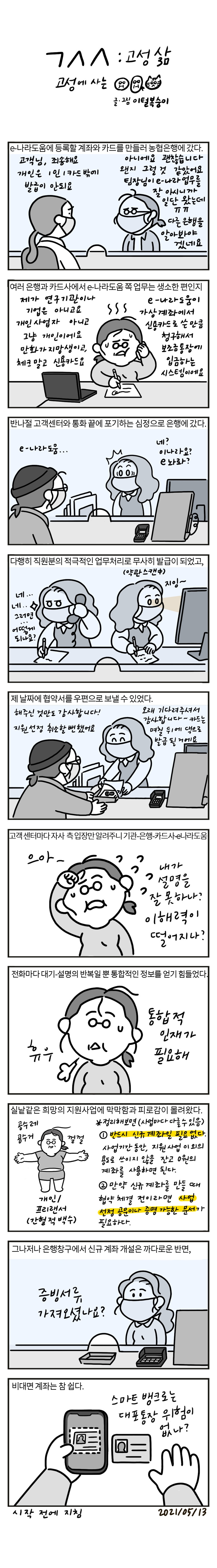 #강원도고성살기 #웹툰 #귀촌 #자영업 #중년 #3040 #코로나시대 #일상웹툰 #세컨더리액션스튜디오 #2ndaryActionStudio #e-나라도움 #이나라도움계좌만들기 #보조금전용통장 #e-나라도움전용신용카드 #창작지원 #속초농협 #속초우리은행