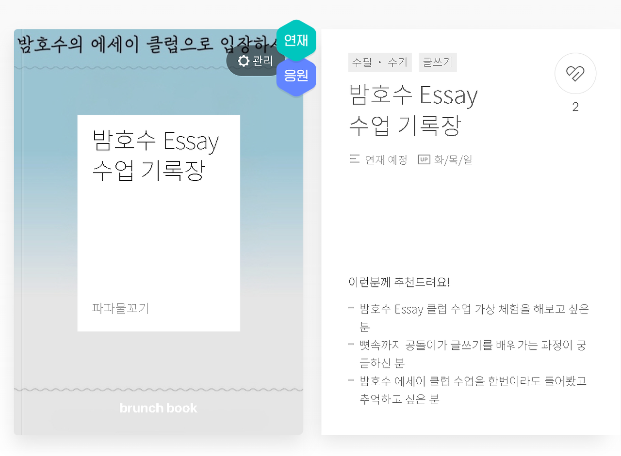 1. 밤호수 Essay 클럽 수업 가상 체험을 해보고 싶은 분